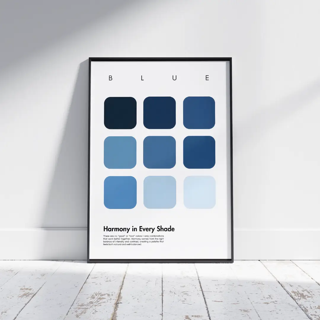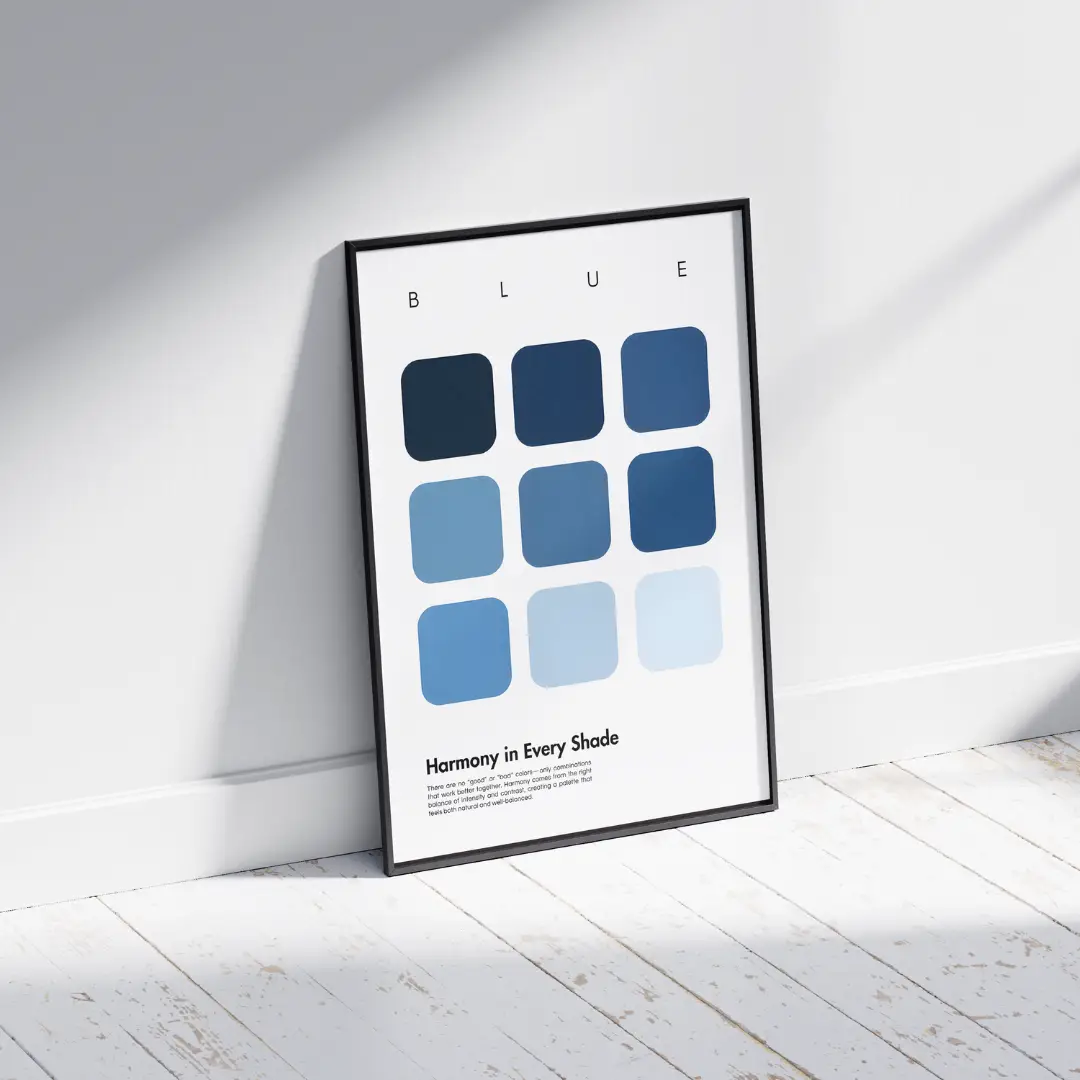 Transform your walls with the peaceful hues of our Blue Color Palette Poster. Showcasing a beautifully curated range of blues—from deep navy to soft sky tones—this artwork brings a calming, oceanic vibe to any room. Whether for a bedroom, office, or living space, this modern print enhances relaxation and focus, making it an essential addition to your decor.