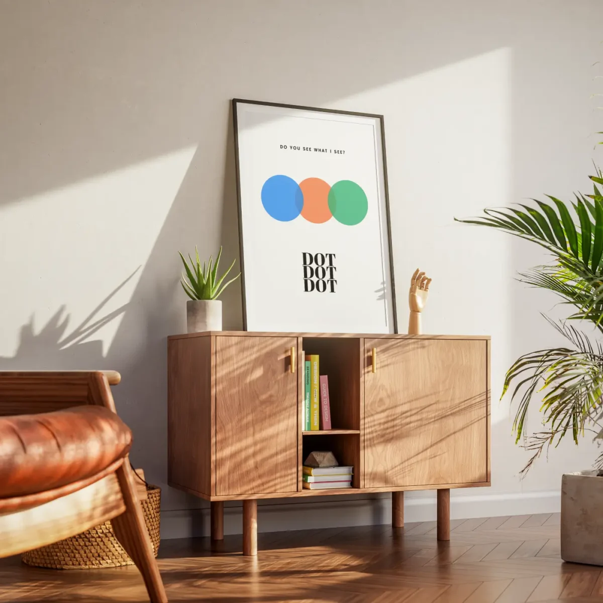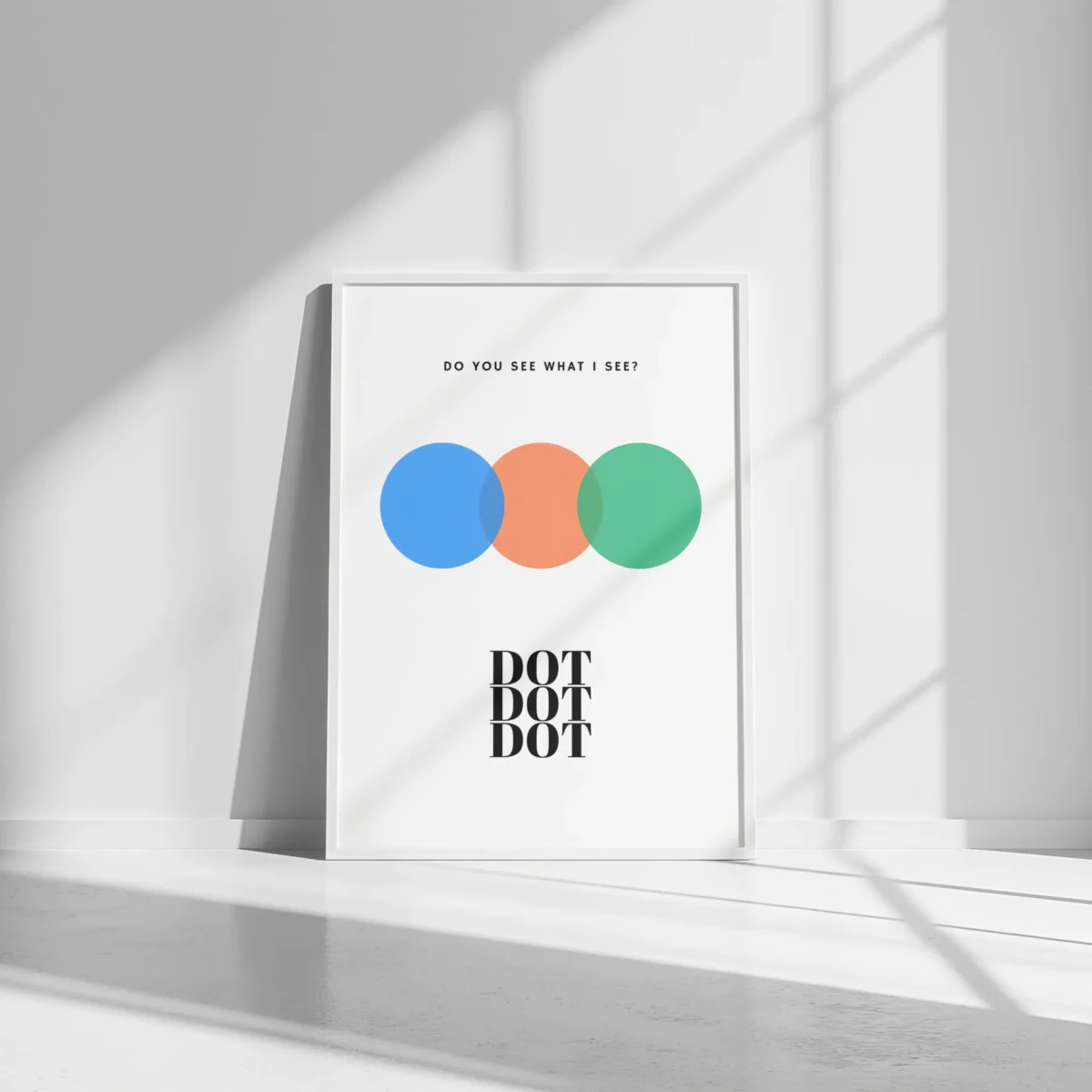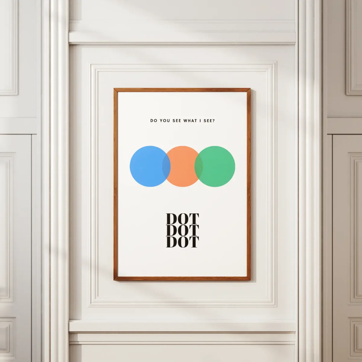 How we see things is often shaped by our own perspectives. The “Do You See What I See?” poster from the Dot Dot Dot collection challenges the way we interpret the world. With a harmonious balance of blue, orange, and green, this minimalist design invites conversation and thought.