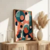 Transform your space with our captivating Modern Geometric Shapes Art Print. This is a perfect blend of bold abstract forms and vibrant colors! Featuring eye-catching triangles, circles, and hexagons, this poster is designed with clean lines and a balanced composition to fit effortlessly into any modern interior. The color palette, including teal, mustard yellow, coral, and navy blue, adds a trendy yet minimalist flair, ensuring it complements various design styles.