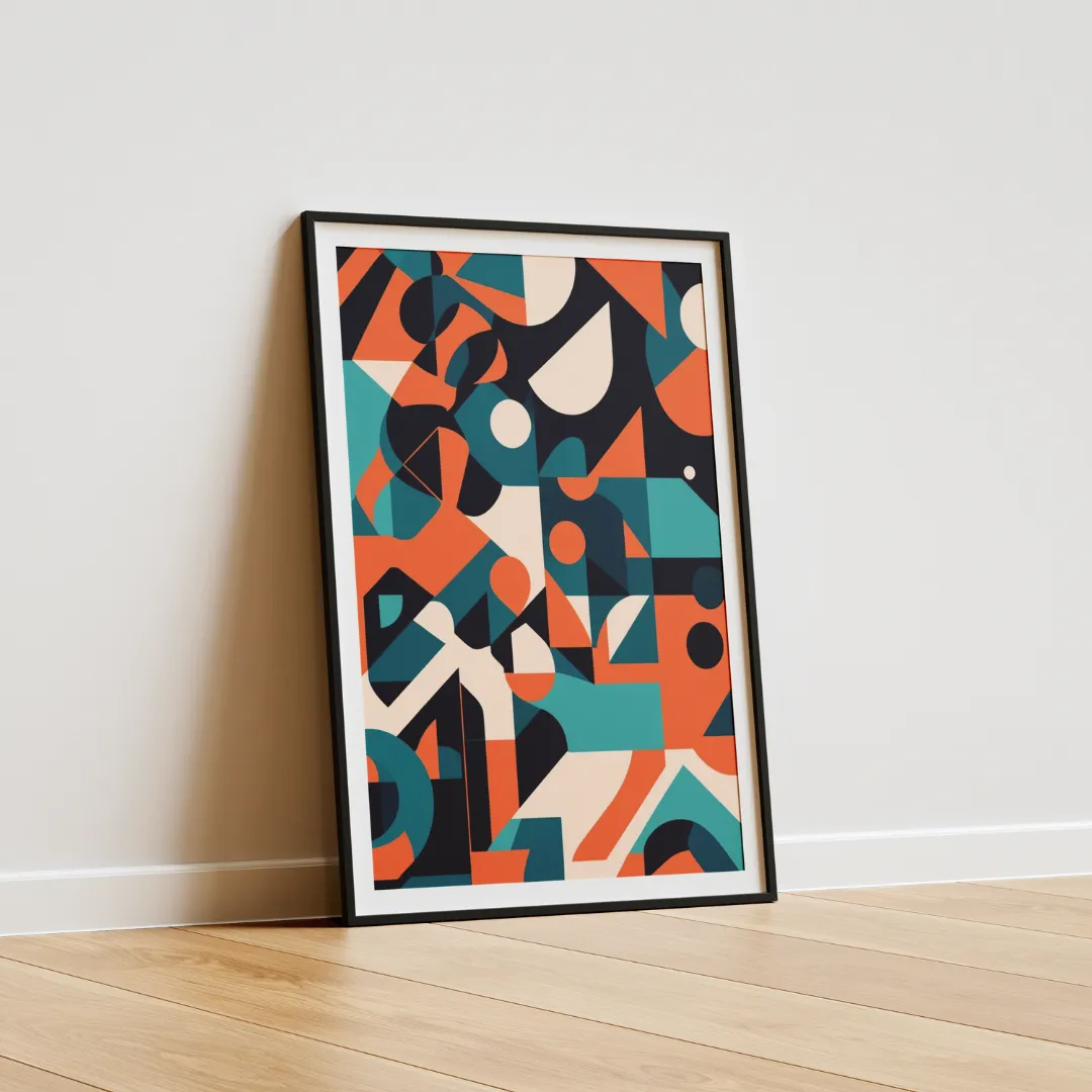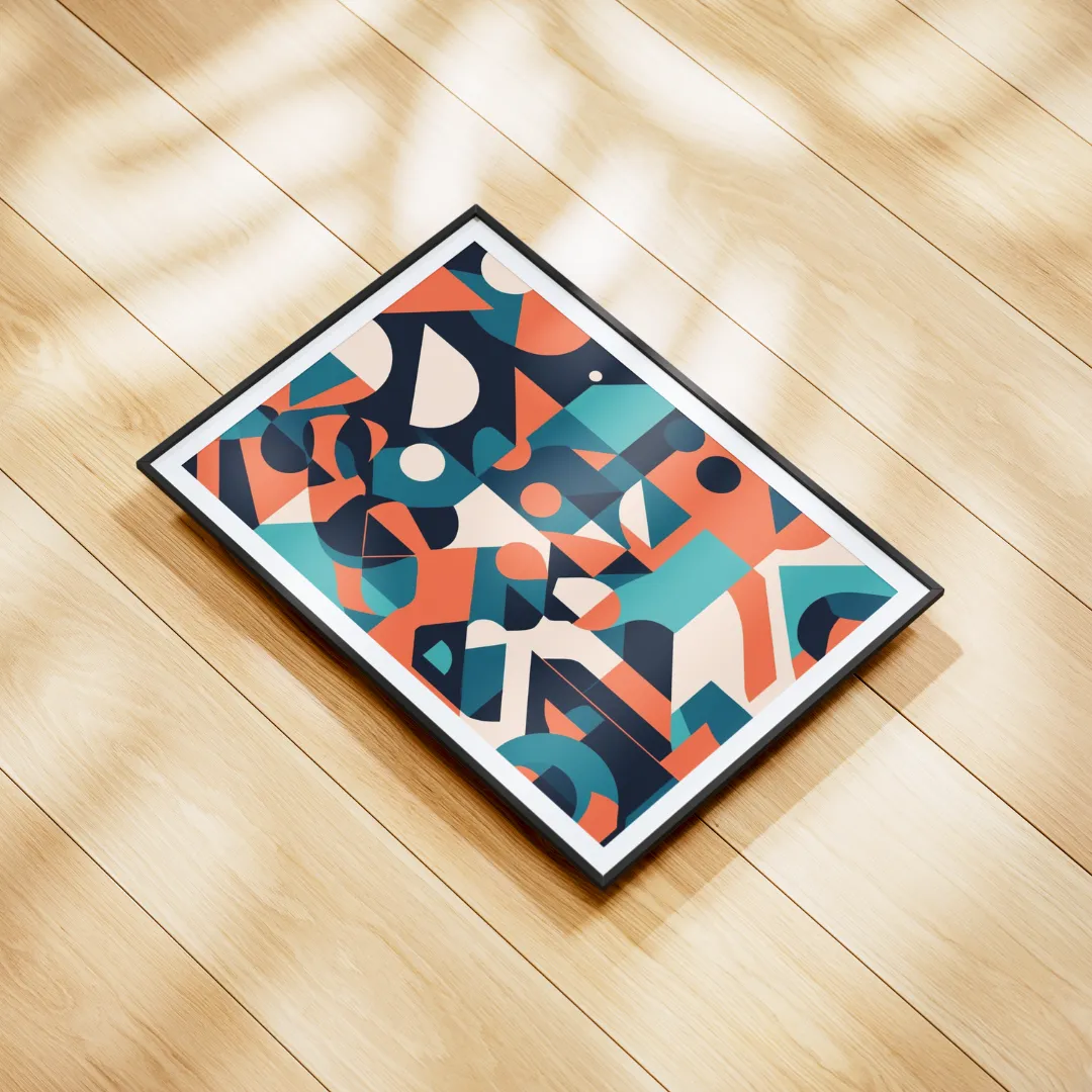 Bring contemporary charm to your home with our Modern Geometric Art Poster. A perfect blend of bold abstract forms and vibrant colors! Featuring eye-catching triangles, circles, and hexagons, this poster is designed with clean lines and a balanced composition to fit effortlessly into any modern interior. The color palette, including teal, mustard yellow, coral, and navy blue, adds a trendy yet minimalist flair, ensuring it complements various design styles.