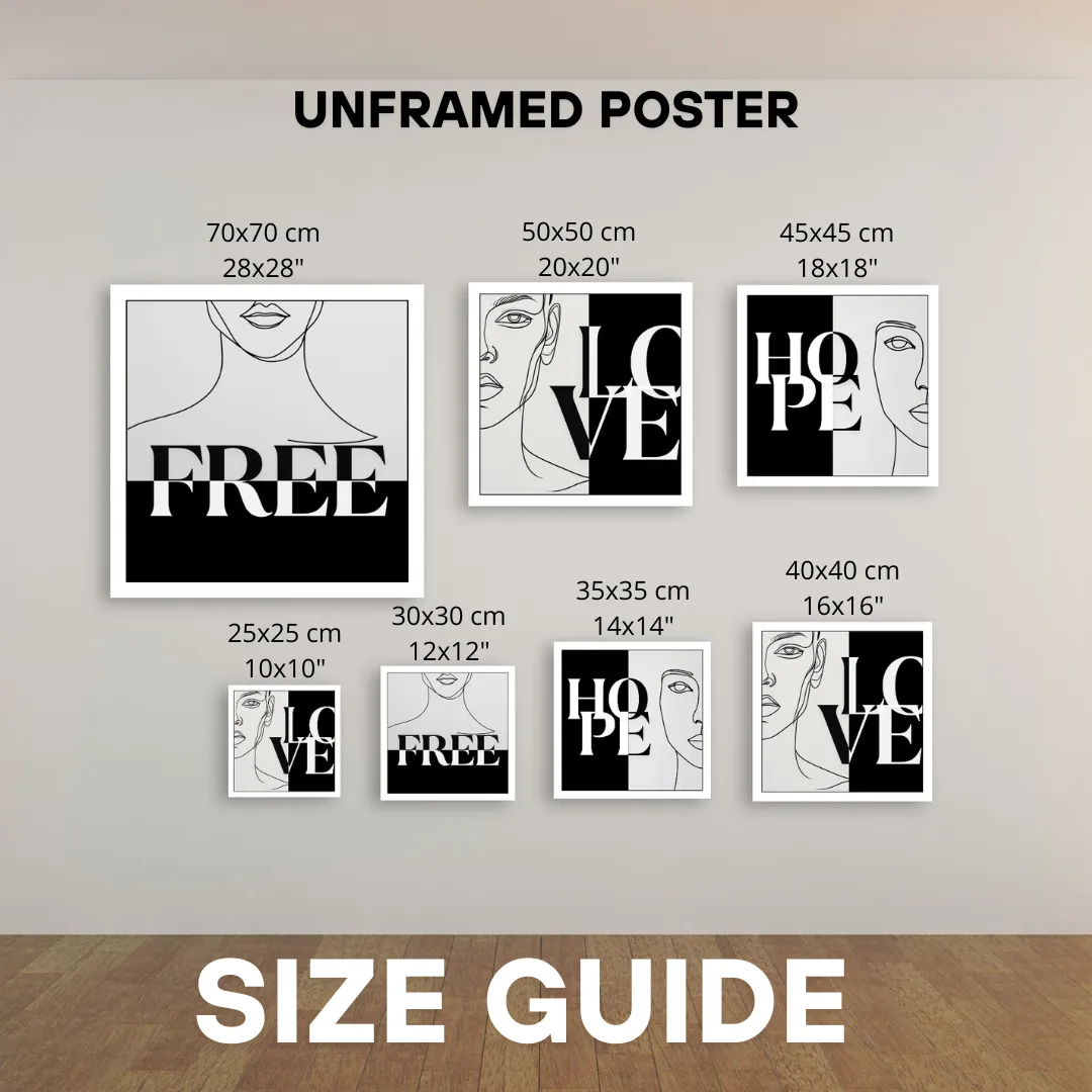 Infuse your space with positivity through minimalist design. The “HOPE” poster features a continuous one-line female portrait, delicately drawn to reflect serenity and strength. Overlaid with striking serif typography, this black and white artwork blends modern elegance with emotional clarity. Perfect for bedrooms, living rooms, or creative spaces, it offers timeless decor that inspires optimism. Printed on-demand using high-quality, sustainable materials.