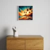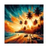 Elevate your space with this breathtaking poster capturing a tropical beach drenched in the radiant glow of a sunset. This artwork blends dynamic shades of orange, blue, and gold in a striking abstract style, evoking the warmth and tranquility of a serene seaside escape. Perfect for brightening up your living room, bedroom, or workspace, this vibrant wall art also makes a thoughtful gift for lovers of tropical landscapes, modern decor, and artistic expressions of nature. Available in a range of sizes to complement any interior.