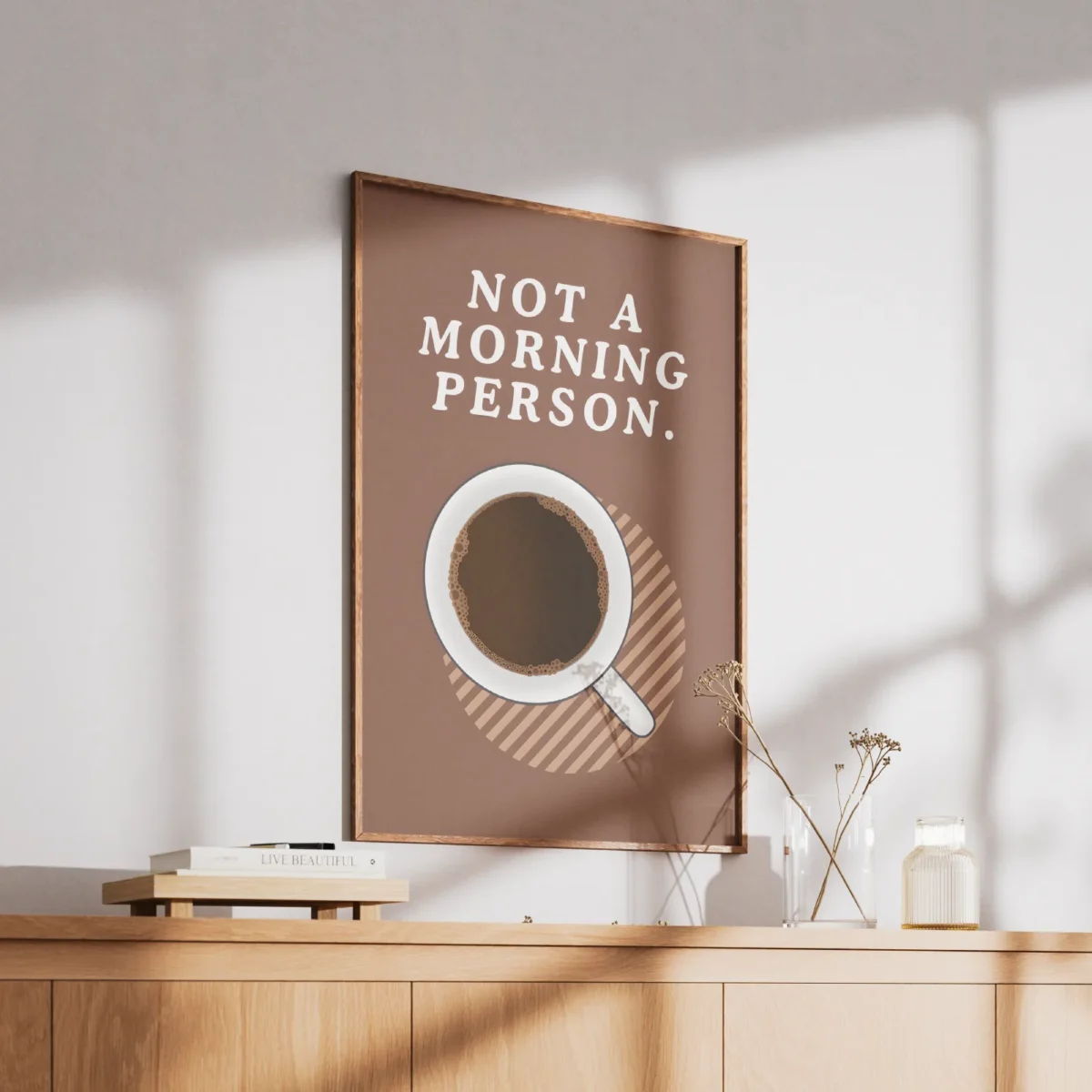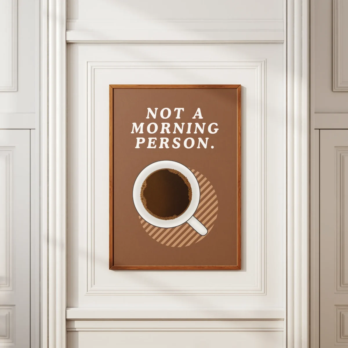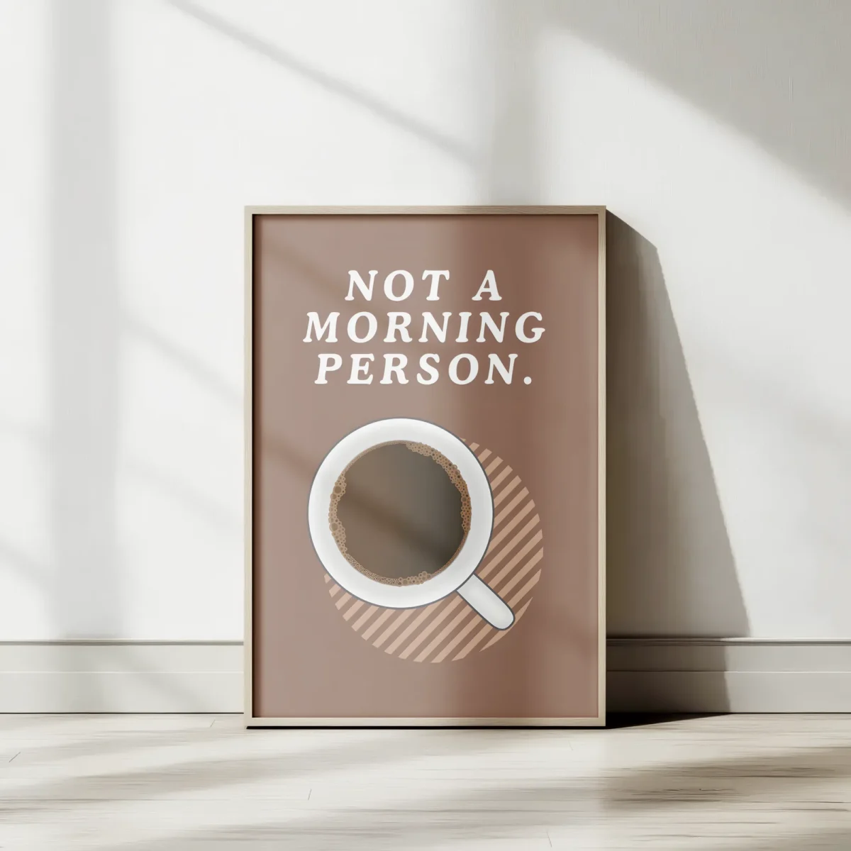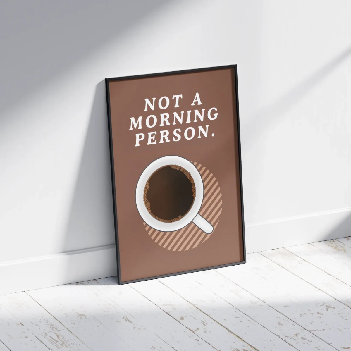 Say it with art: the “Not A Morning Person” poster is every coffee lover’s mood before 9am. Clean lines, coffee cup top view, and a truth bomb in bold letters. A perfect fit for kitchens, break rooms, or your sleepy corner at home. Printed on quality paper that won’t fade with your morning grumpiness.