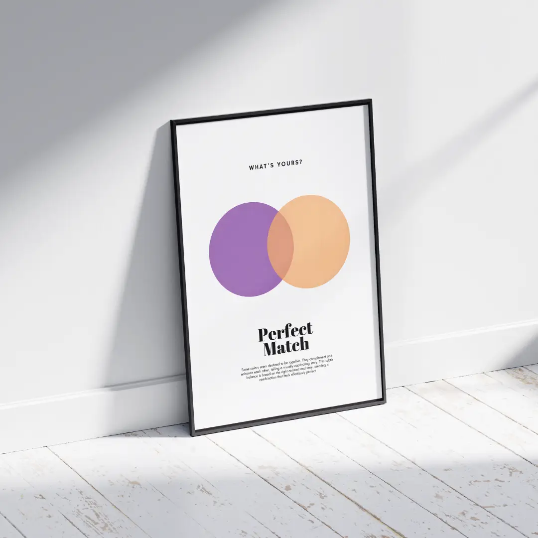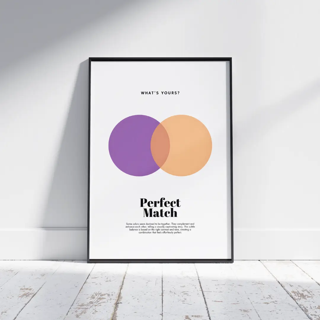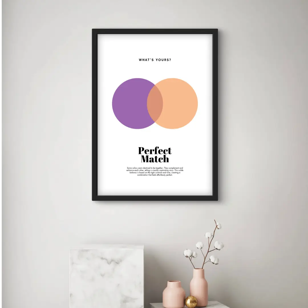 This “Perfect Match” poster brings together the mysterious allure of purple and the comforting warmth of peach. A beautifully artistic contrast that feels both cozy and inspiring, perfect for uplifting any space with creative energy.