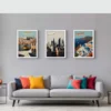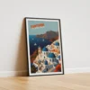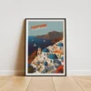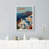 Transport yourself to the breathtaking views of Santorini with this minimalist poster, inspired by whitewashed houses and deep blue seas.