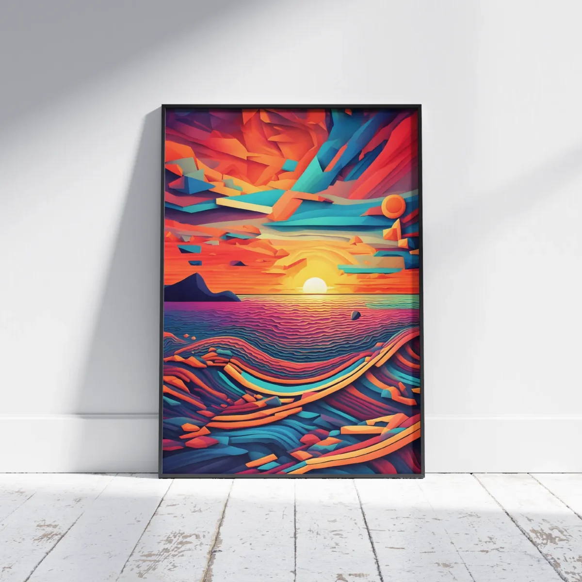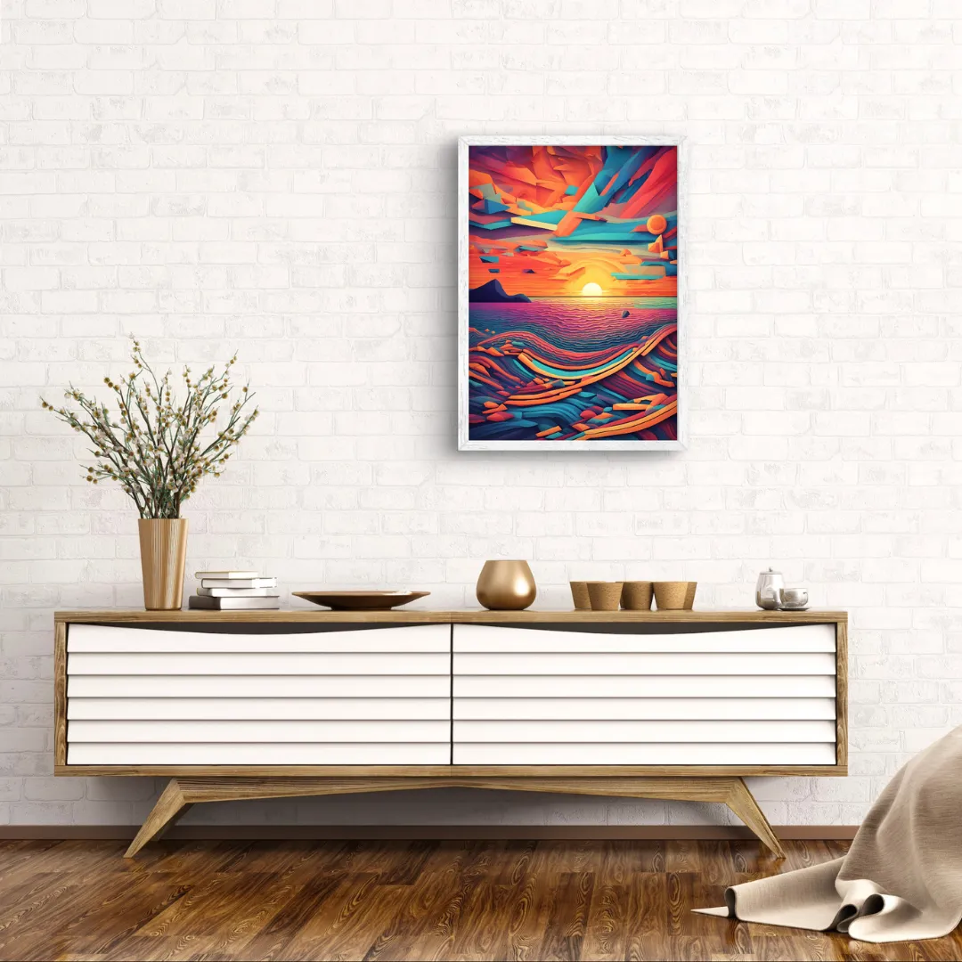 Bring the vibrant hues of a beach sunset into your space with our stunning “Shapy Sunset” print. In a Retro Video Game Style Beach Sunset Print! This one-of-a-kind artwork combines the nostalgia of retro gaming with the beauty of digital cubism, making it a perfect addition to any room in your home. Ideal for living rooms, game rooms, or even your office, this print will transport you to a sun-kissed paradise every day.