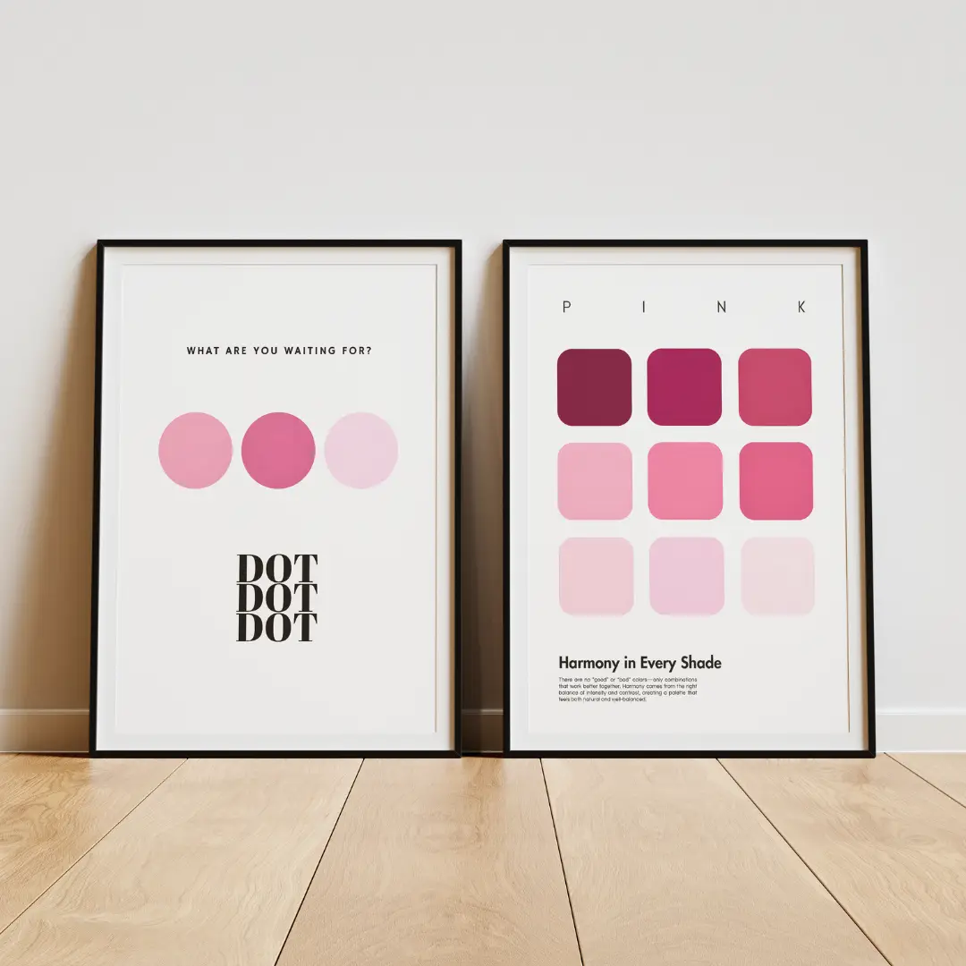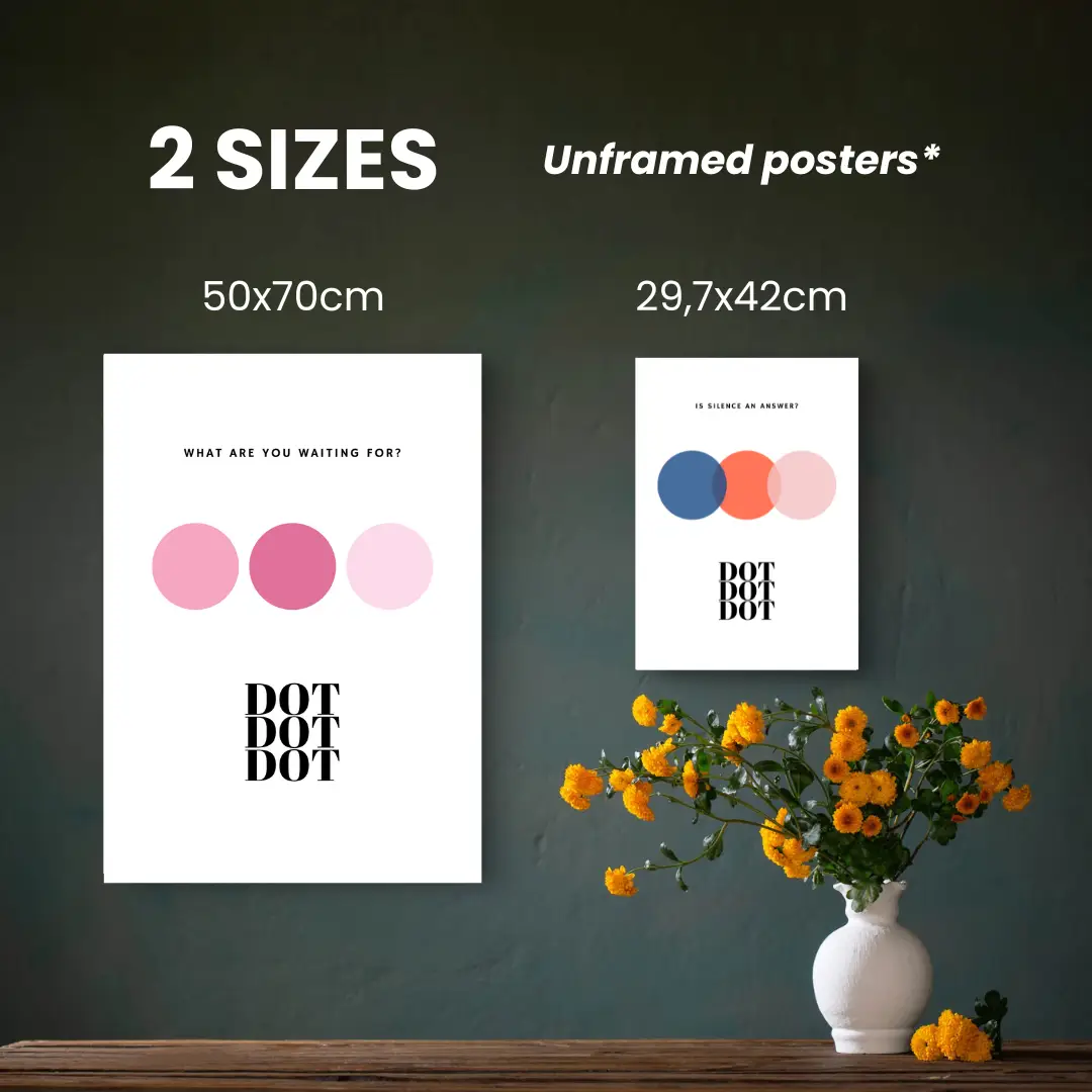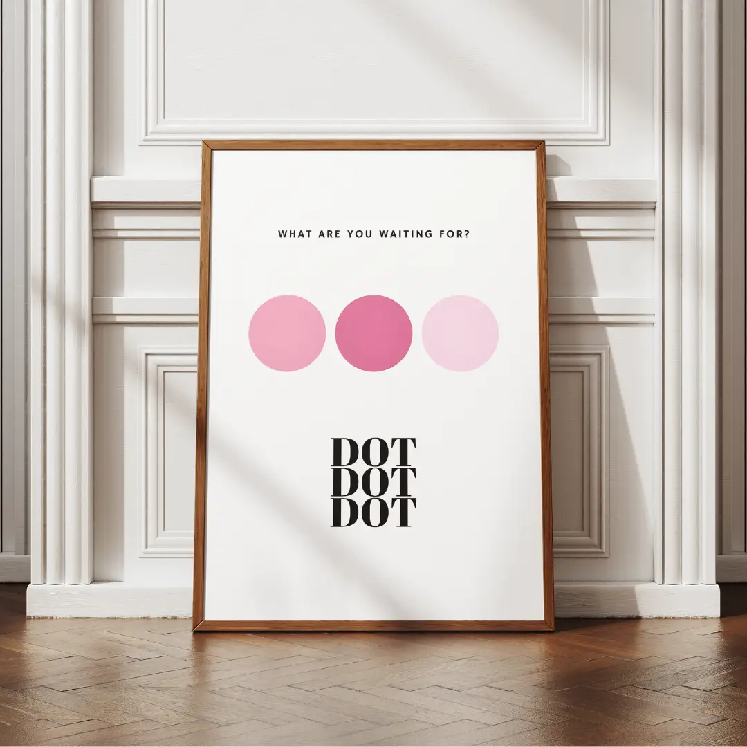 The “What Are You Waiting For?” poster from the Dot Dot Dot series is a striking minimalist piece that encourages movement and action. The soft pink hues bring a calming yet inspiring touch to any space, making it an ideal choice for modern interiors.