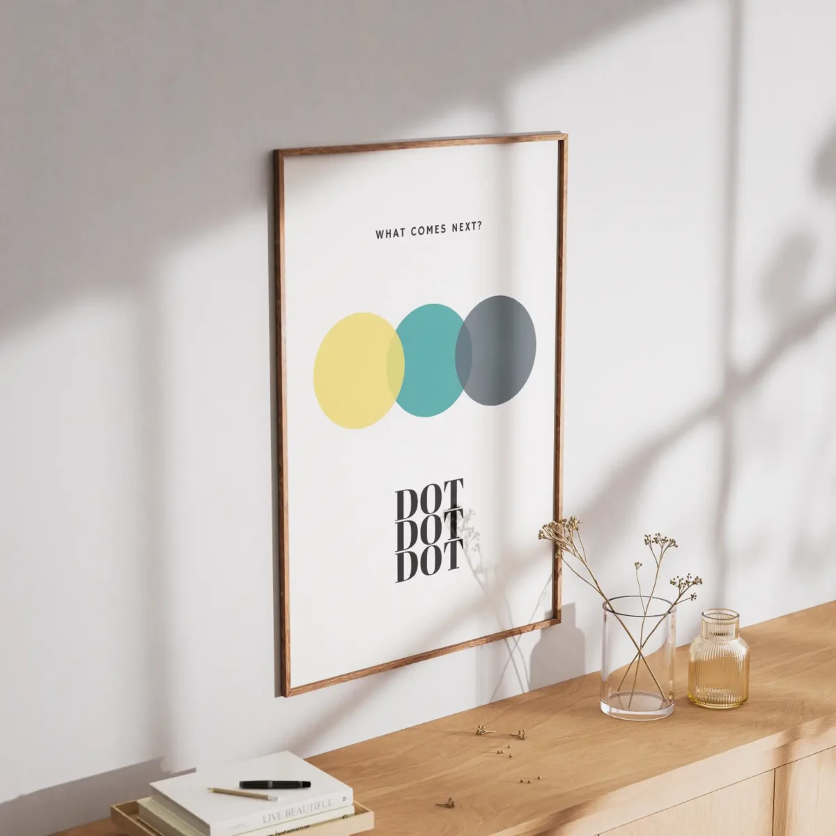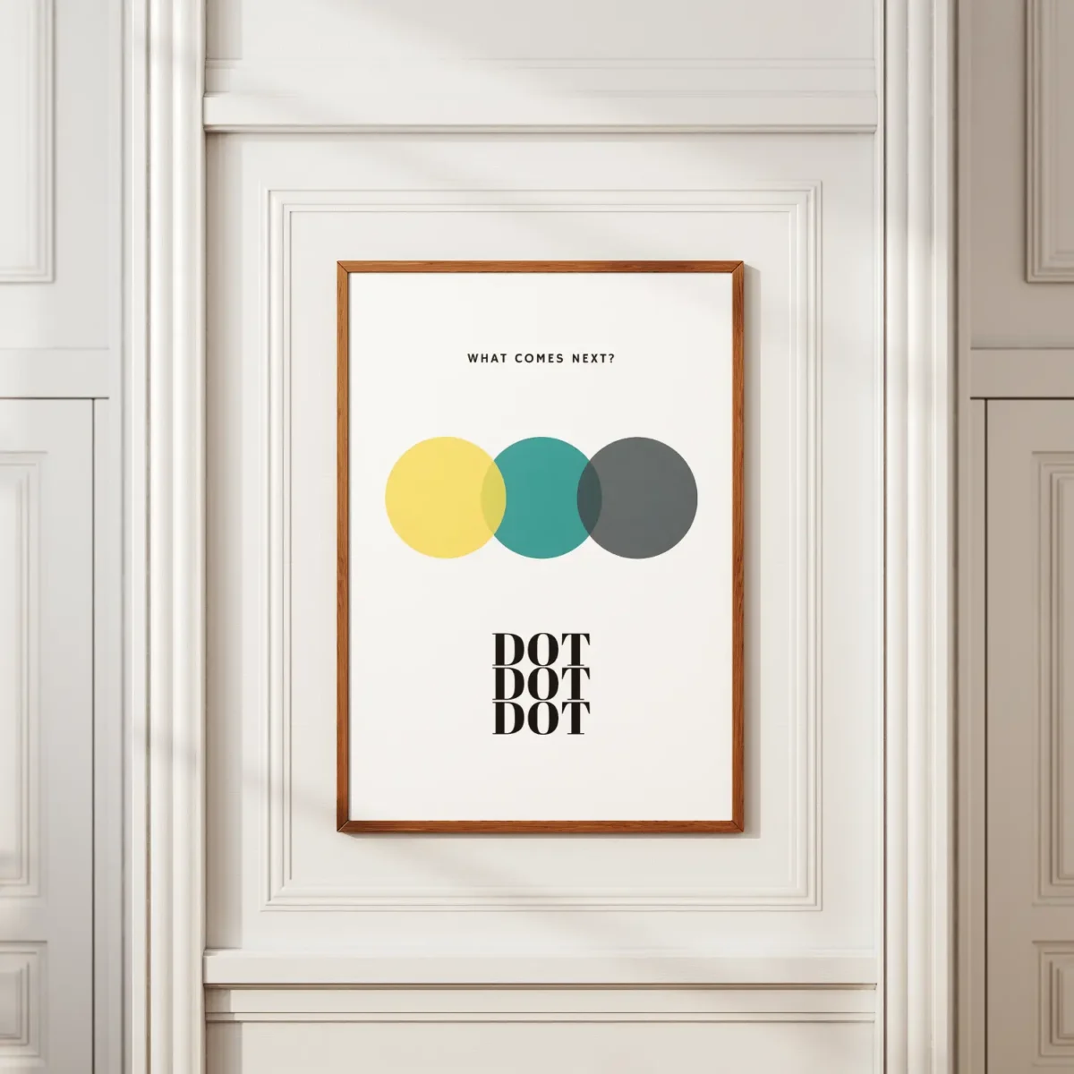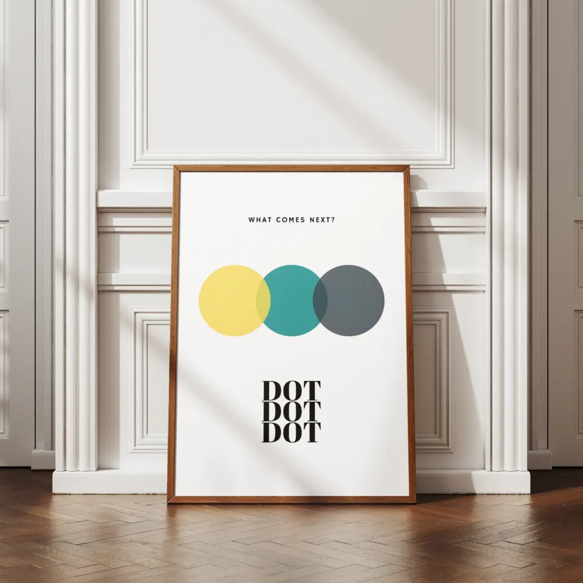 Explore the unknown with the “What Comes Next?” print from the Dot Dot Dot collection. This artwork blends abstract design with a philosophical question, encouraging self-reflection and curiosity about the future. The overlapping warm and cool tones create a visually balanced composition that fits any modern or minimalist space. Perfect for those who seek inspiration through art.