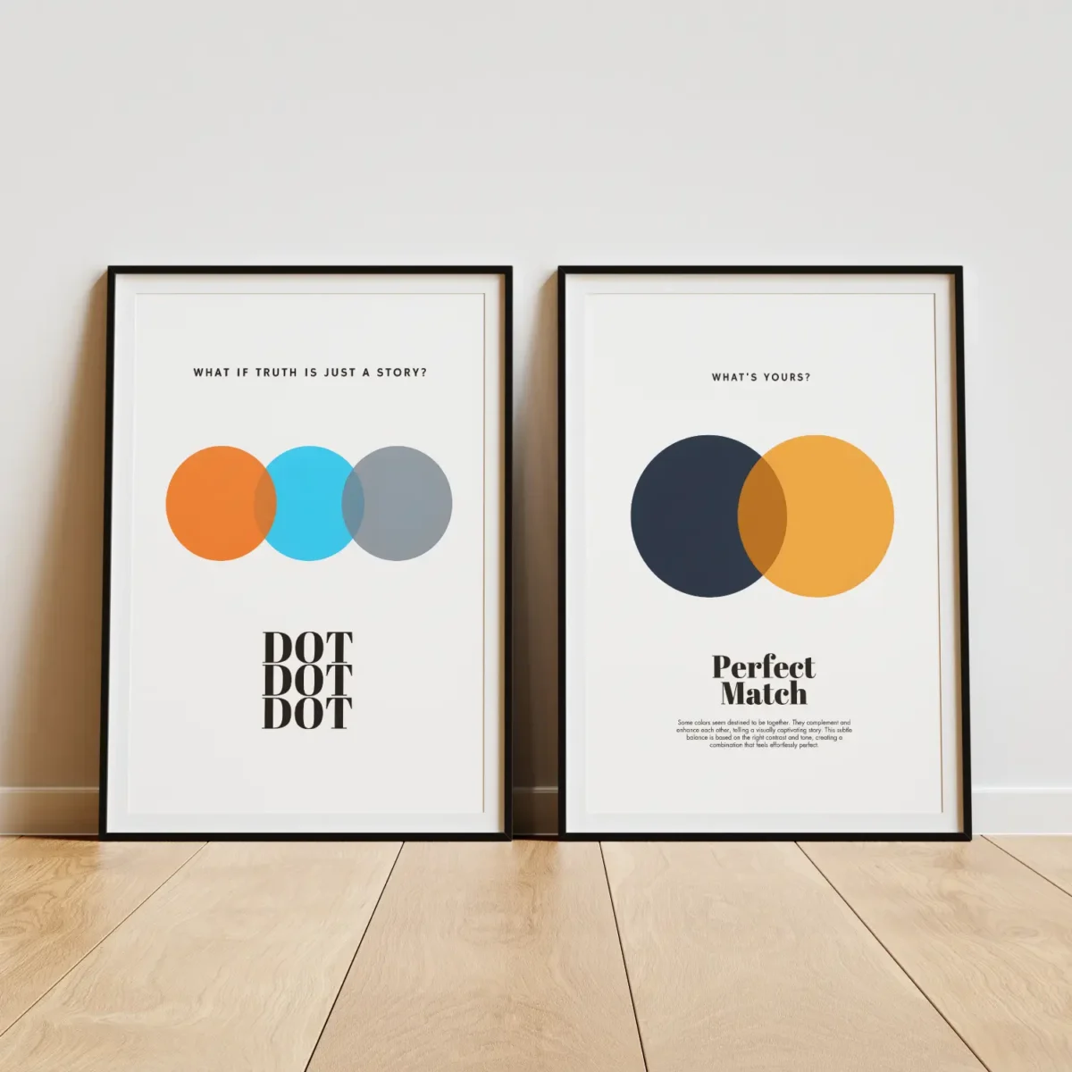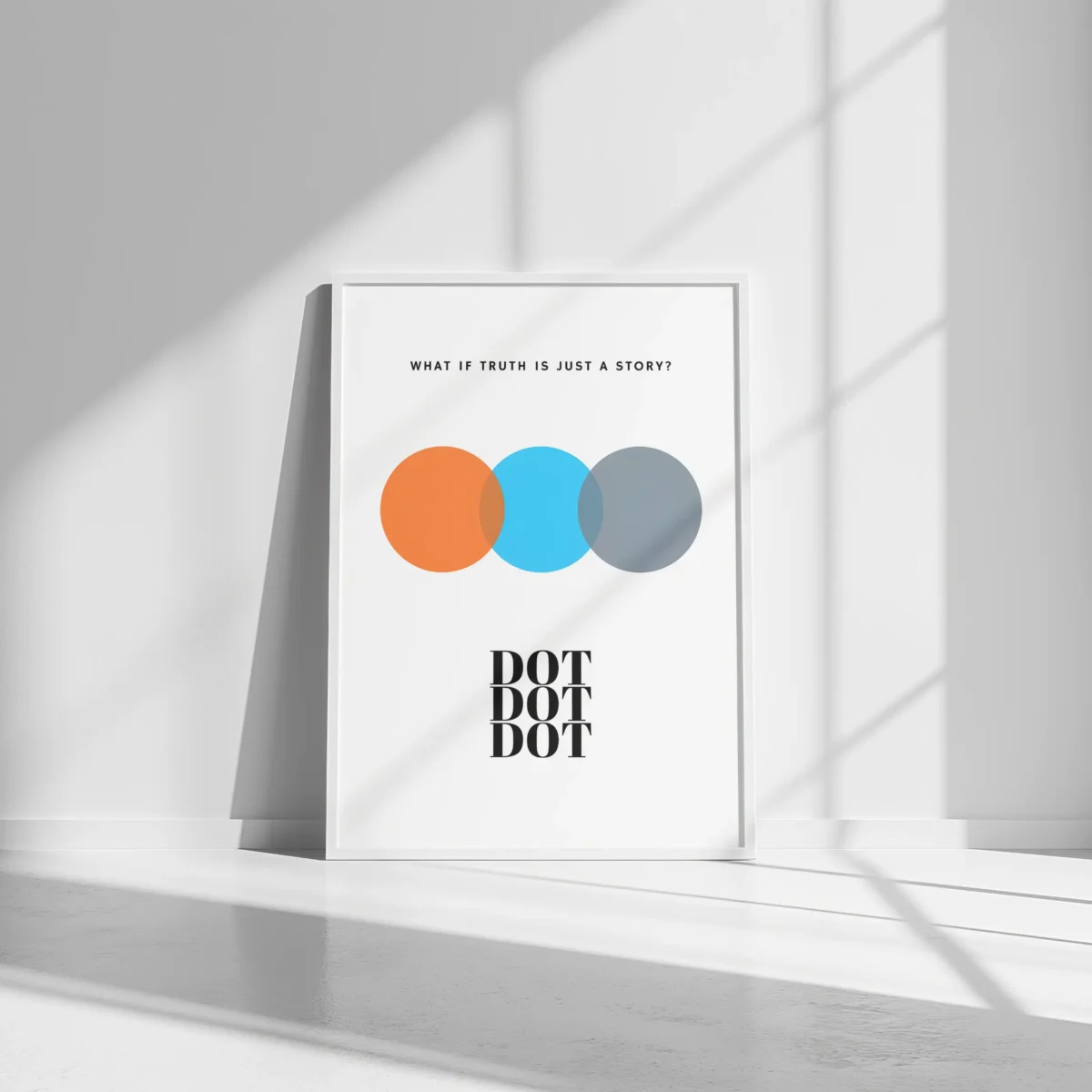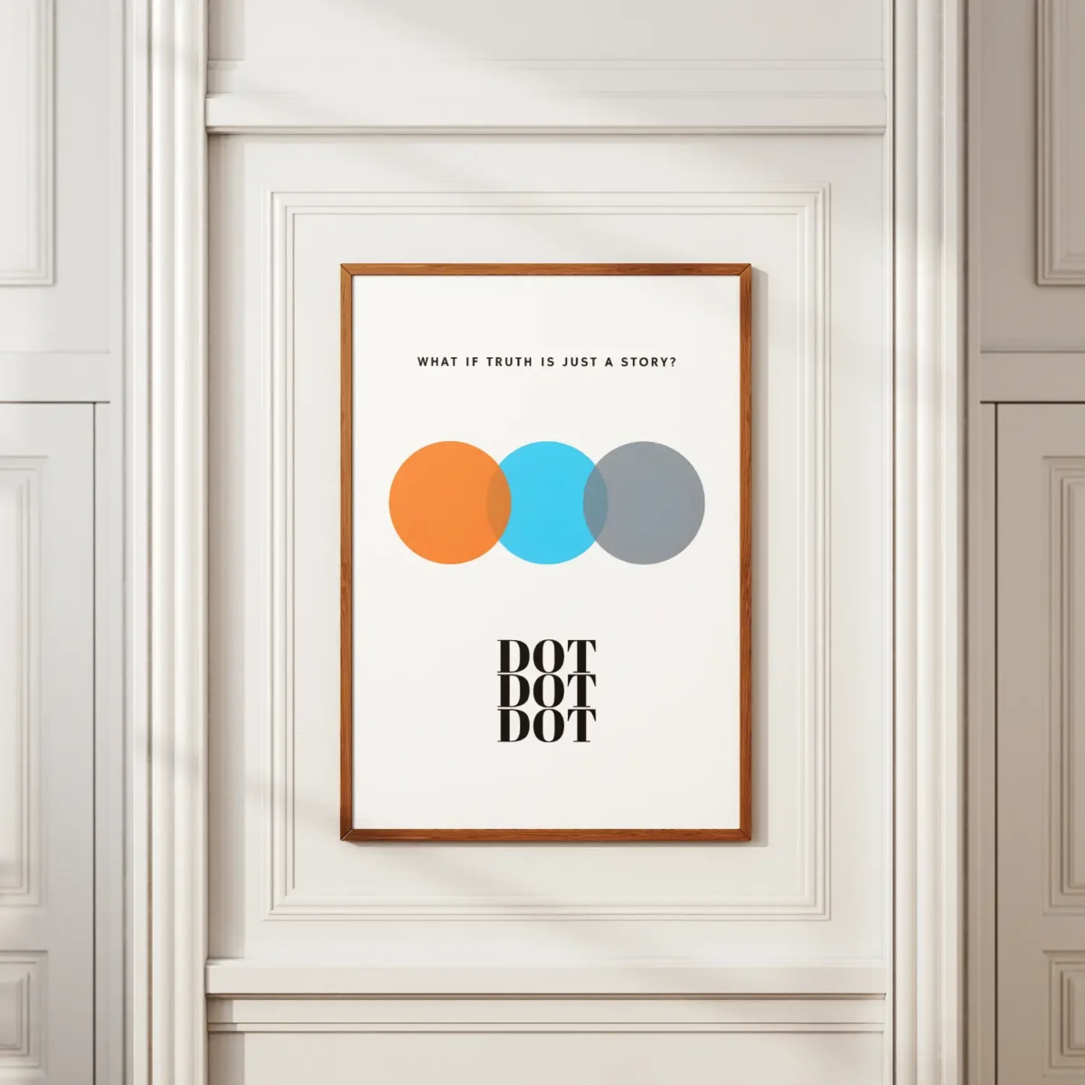 What if everything we believe is just a story? The “What If Truth Is Just a Story?” print from the Dot Dot Dot collection invites deep contemplation. Featuring vibrant orange, blue, and gray tones in a minimalist composition, this artwork sparks curiosity and introspection.