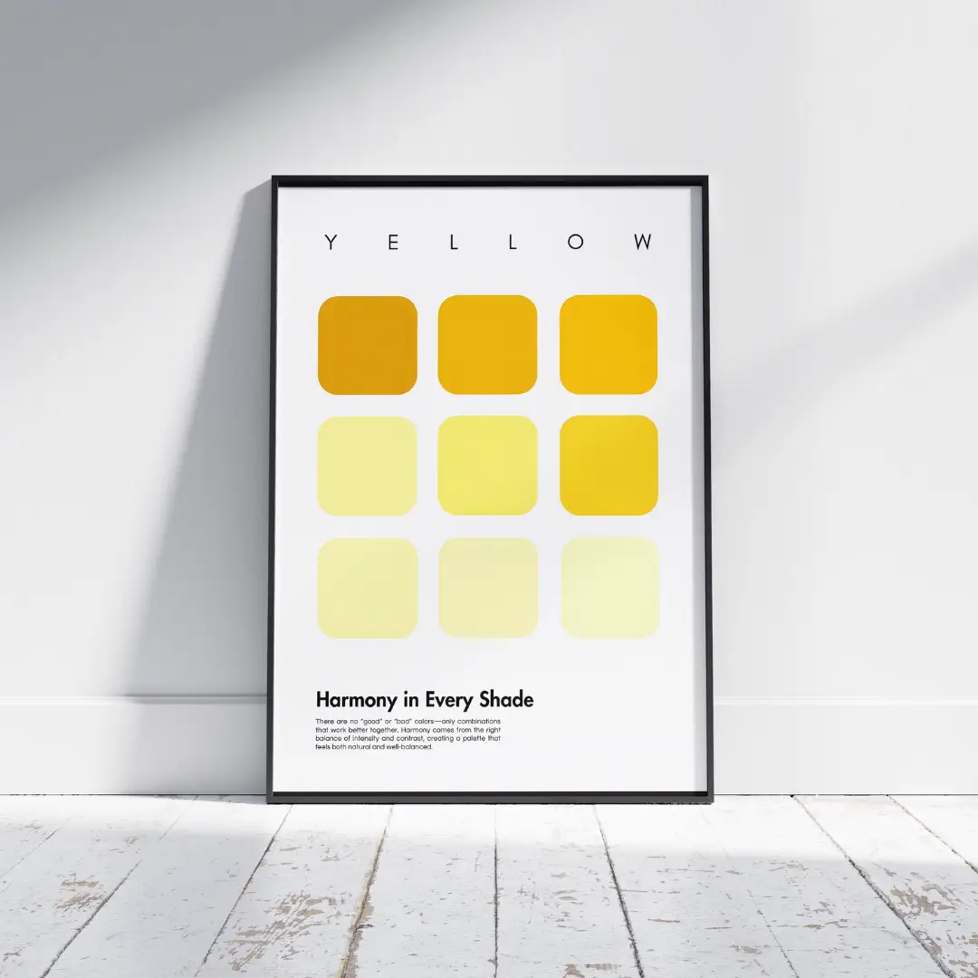 Light up your walls with the Yellow Color Palette Poster, an uplifting design that radiates warmth and optimism. From golden hues to soft buttery tones, this poster captures the full spectrum of yellow, making it a perfect statement piece for any room. Ideal for those who love sunshine vibes and energetic interiors, this artwork instantly brightens up your space.
